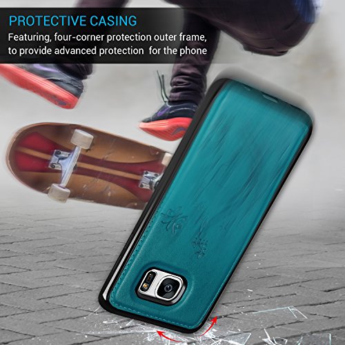 SUPWALL S7 Edge Cover Custodia, Premium PU e Silicone TPU Case [2 in 1, Separato] - Flip Custodia Morbido Leather, Goffratura Farfalla e Fiore, Chiusura Magnetica, Supporto Stand - Blu