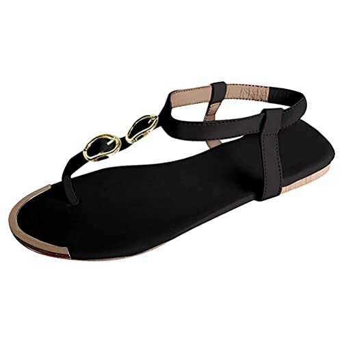 SUPYINI Sandali da donna con cinturino a T, sandali gladiatore piatti da donna, punta aperta, sandali da spiaggia bohémien estivi casual, sandali con lacci alla moda,Nero 37