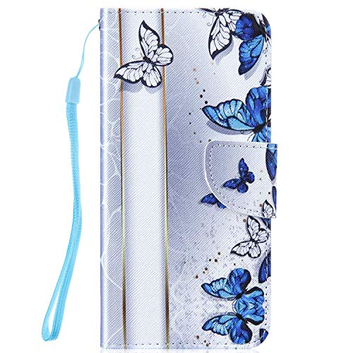 Surakey Cover Compatibile con Huawei P20 Lite Flip Libro Portafoglio Pelle Case Modello di Personalità con Funzione Supporto e Porte Carte Chiusura Magnetica Pieghevole Custodia,Farfalla Blu