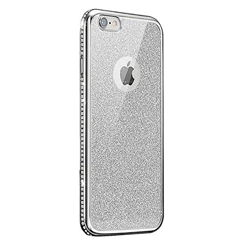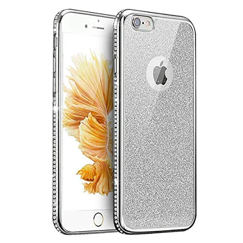 Surakey Cover Compatibile per iPhone 6 Plus/6S Plus Glitter Brillante Silicone Custodia con Bordo Placcato Lusso Strass Bling Ultra Sottile Morbida Gomma Crystal Clear Protettiva Bumper Case,Argento