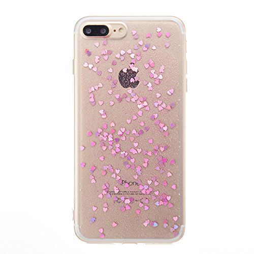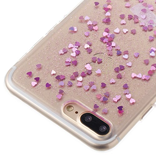 Surakey Cover Compatibile con iPhone 8 Plus/7 Plus Silicone Trasparente con Brillantini Paillettes Cuori d'Amore Glitter Custodia TPU Bumper Ultra Sottile Gomma Morbida Protettiva Cover,Viola Chiaro