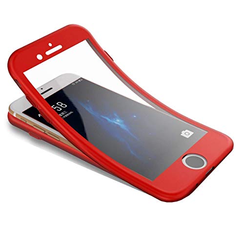 Surakey Cover Compatibile con iPhone 7/8 Silicone Morbido Protettiva Cover con Vetro Temperato 360 Gradi Protezione Totale Davanti e Dietro Ultra Sottile TPU Custodia Full Body Case,Rosso