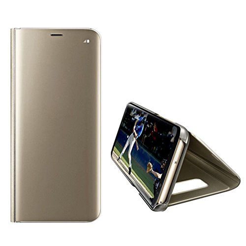Surakey Cover Compatibile con Samsung Galaxy S7 Edge, Specchio Clear View Case Ultra Sottile Flip Libro Custodia con Funzione Supporto Semi Trasparente PC Portafoglio Protettiva Cover,Oro