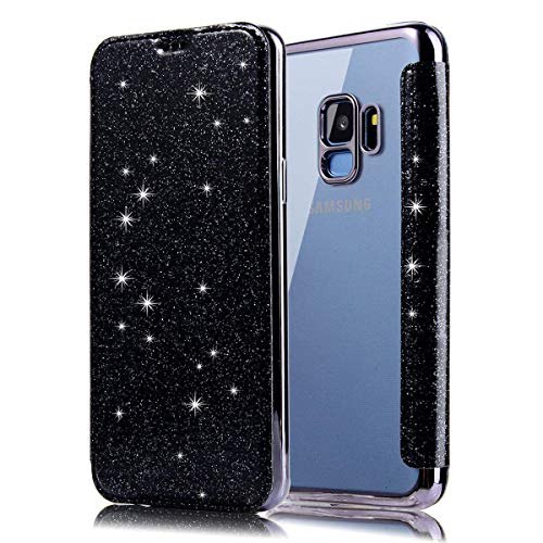 Surakey Cover Compatibile con Samsung Galaxy S9 Plus Glitter Bling Flip Portafoglio Custodia in PU Pelle + Trasparente Silicone Back Case Lusso Ultra Sottile Cover a Libro con Tasche per Carte,Nero