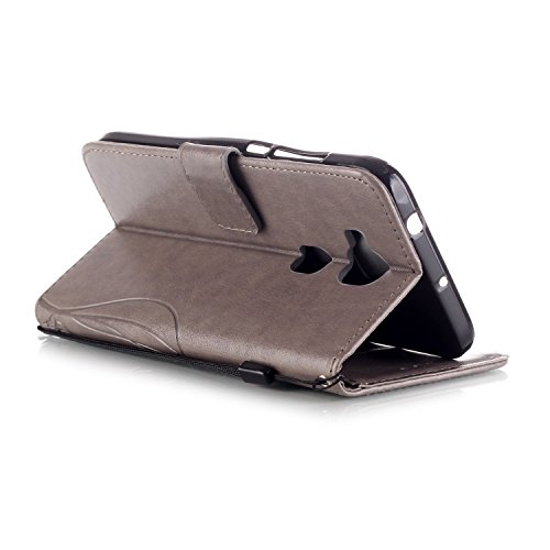 Surakey Cover Compatible con Huawei G8 Pelle, Custodia Flip a Libro Glitter Strass Brillante Fiore Farfalla Portafoglio Magnetica Cover con Porta Carte e Funzione Stand,Grigio