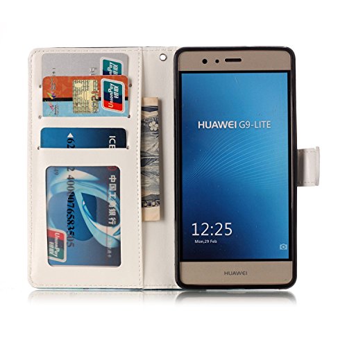 Surakey Cover Huawei P9 Lite Pelle, Custodia Flip a Libro per Huawei P9 Lite Pieghevole Portafoglio Wallet Case con Porta Carte,Chiusura Magnetica,Funzione Supporto,Antiurto TPU Bumper,Acchiappasogni