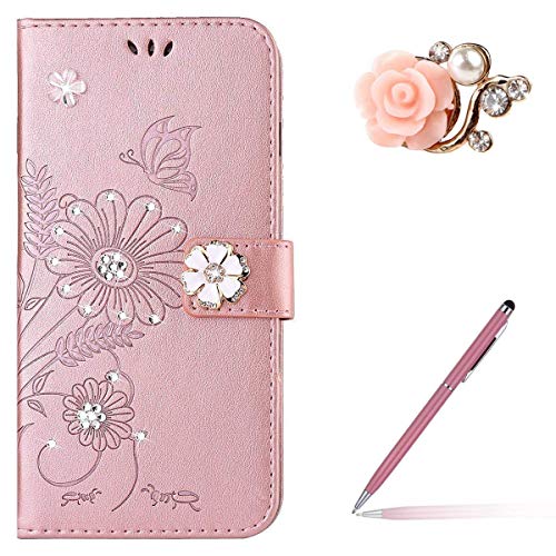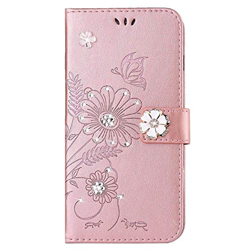 Surakey Cover iPhone 7 Plus/8 Plus, 3D Strass Bling Diamante Brillante Flip Portafoglio Custodia con Chiusura Magnetica Tasca per Carte Supporto Stand Cover a Libro per iPhone 7 Plus/8 Plus,Oro Rosa