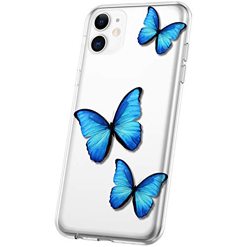 Surakey Custodia per iPhone 11,Silicone Trasparente con Disegni Farfalla Cover Crystal Clear Gomma Case Morbida TPU Bumper Ultra Sottile Protettiva Cover per iPhone 11,Tre Farfalle Blu