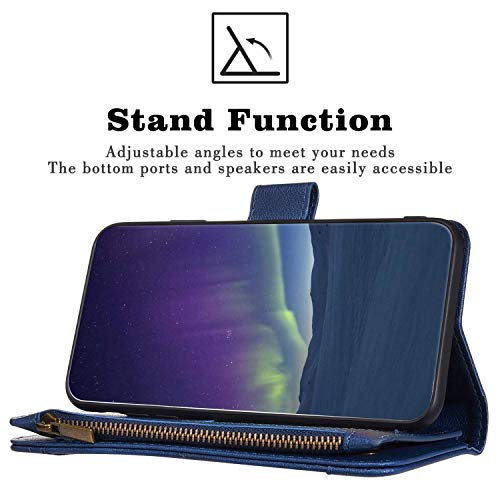Surakey Custodia per iPhone X/XS,Flip Libro Magnetica Portafoglio Wallet Cover in PU Pelle con 7 Tasche per Carte Funzione Stand Antiurto TPU Bumper Protettiva Cover per iPhone X/XS,Blu