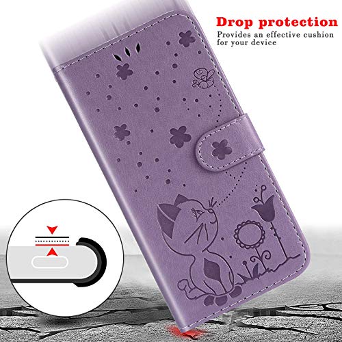 Surakey Custodia per Samsung Galaxy S9,PU Pelle Portafoglio Wallet Cover Flip Libro Gatto Cartoon Disegno Fiore Case Porta Carte Antiurto TPU Bumper Protettiva Cover per Samsung Galaxy S9,Viola