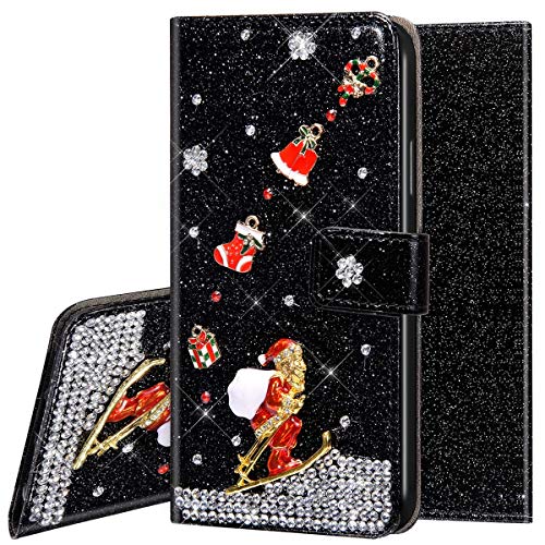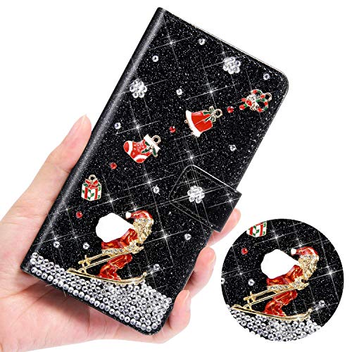 Surakey Custodia per Samsung Galaxy S20 Plus,Glitter Flip Portafoglio Natale Strass Cover in PU Pelle Brillantini Libro Case con Porta Carte TPU Bumper Protettiva Cover per Galaxy S20 Plus,Nero