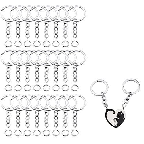SURALIN 60 Pezzi Anelli Portachiavi 25mm Anello Portachiavi con Catena a Maglie e Anelli di Salto, anelli portachiavi piatto,Portachiavi fai-da-te per Portachiavi Artigianali