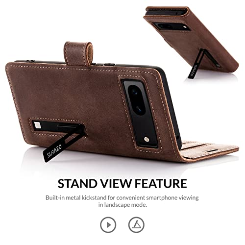 SURAZO Custodia in vera pelle per Google Pixel 7A 5G 5G - Custodia protettiva con motivo zampa - Custodia a portafoglio RFID [con magnete, funzione leggio e scomparto per carte di credito]