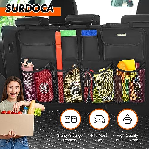 SURDOCA Organizer Auto Portaoggetti - [8 Volte Aggiornamento] Super Capacità extra Large - XL Borsa Auto, Accessori auto interno with Rete Resiliente, Tasca Portaoggetti Auto, Nero Plus Size
