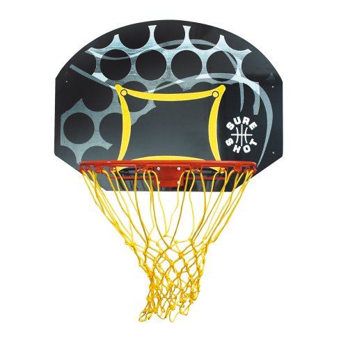 Sure Shot - Impianto Basket a Parete per Bambini, Completo di tabellone in Resina melaminica e canestro, Colore: Nero/Giallo/Rosso