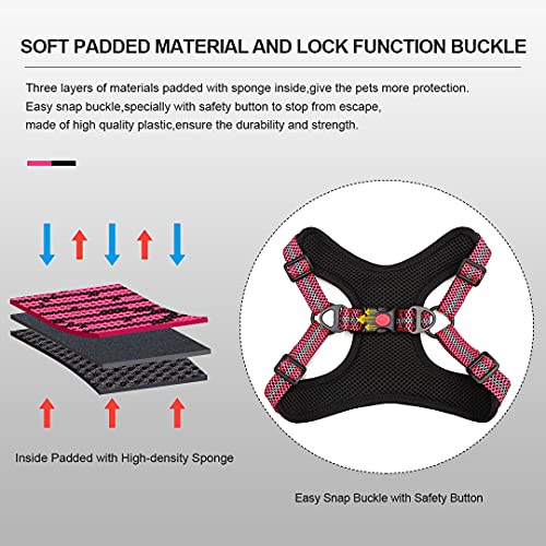Suredoo Pettorina Cane Regolabile, No-Pull Pettorina Riflettente Traspirante per Cani, Gilet Morbido Imbottito Petto Imbracatura Cane Pettorina per Cani Taglia Piccola Media (Petto 46-52cm, Rosa)