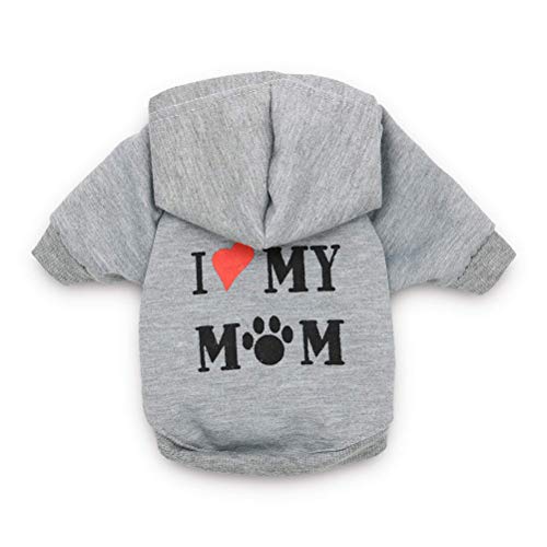 Surenhap Cappotto per Cani I Love My Mom Stampato con Cappuccio Felpa Puppy Vestiti Caldi per Cuccioli