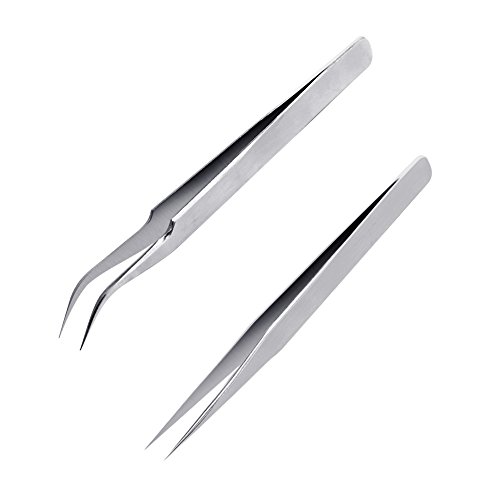 Surenhap 2 Pezzi Pinzette Diritto e Curvo Tip Pinza per Estensioni Ciglia di precisione in Acciaio Inox pinzette