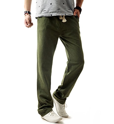 Surenow Pantaloni da Uomo in Lino Sportivi Casuali Vita Bassa Elastica per Corso Spiaggia Outdoor Exlarge