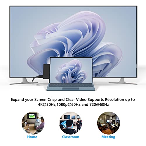 【Hub Surface Pro 9/X con HDMI 4k Adattatore】Questo hub HDMI Surface Pro 9/X supporta risoluzioni video fino a 4K a 30 Hz, supporta risoluzioni 2K/1080p/720p/480p/360p. Visualizza liberamente il video ad alta risoluzione 4K UHD @ 30Hz o Full HD 1080P del tuo laptop su un HDTV, monitor o proiettore tramite la porta HDMI e goditi un piacere visivo ad altissima definizione. La porta USB 3.1 supporta risoluzioni video fino a 8K a 30 Hz (utilizzato in Surface Pro 9) o 4K a 60 Hz ( in Surface Pro X)