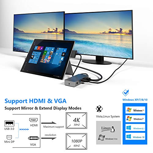 Surface PRO Docking Station per Surface PRO 6/5/4 con 4K HDMI, VGA, Porta RJ-45 Gigabit Ethernet, 3 Porte USB 3.0, Porta USB C, Porta di Uscita Audio, Lettore di schede SD/TF, Porta Micro USB