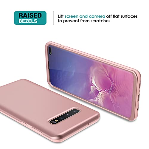 SURITCH Cover Samsung S10 Plus Silicone Custodia Protezione con Schermo Integrata Antiurto Indistruttibile Bumper Rugged Case per Samsung Galaxy S10+ Plus Oro Rosa