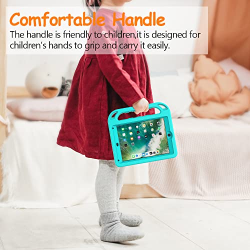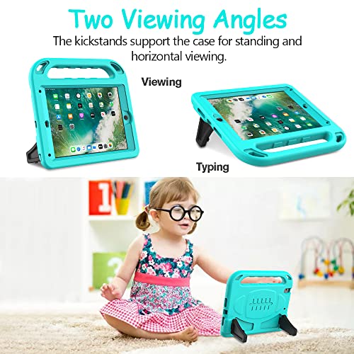Surom - Custodia per iPad 9.7 2018/2017, con protezione schermo integrata, leggera, antiurto, con supporto per bambini per iPad 9.7 2017/2018, iPad Air/iPad Air 2/iPad Pro 9.7, colore: Turchese