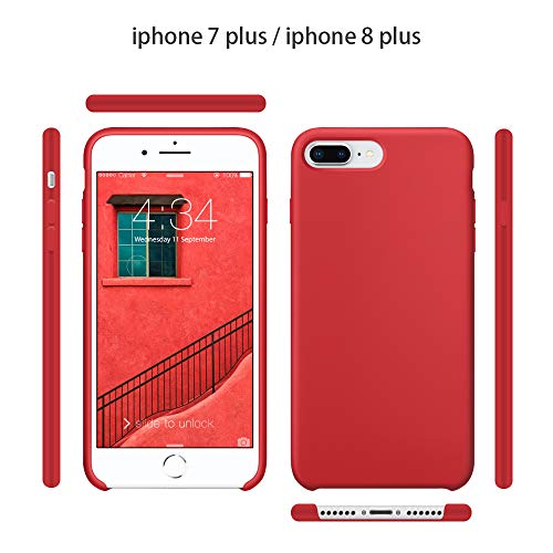 SURPHY Cover Compatibile con iPhone 8 Plus/iPhone 7 Plus, Custodia in Silicone Liquido Cover Antiurto con Fodera in Microfibra, Ultra Sottile Protettiva Case per iPhone 8/7 Plus 5.5 Pollici, Rosso