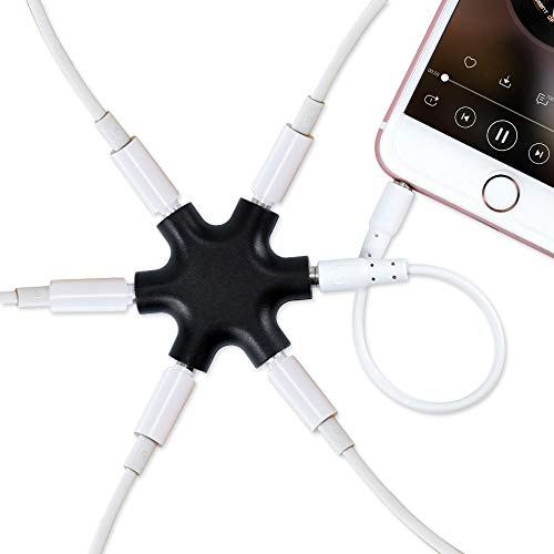 Cinque prese: l'adattatore per cuffie divide la linea in 5 porte ausiliarie (3,5 mm), collega fino a cinque cuffie a un dispositivo per condividere il tuo suono preferito con gli amici e creare momenti memorabili.