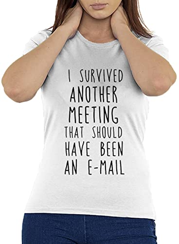 I Survived Another Meeting That Should Have Been Email Boring Work T-Shirt da Donna in Cotone Girocollo Bianca Medium