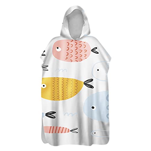 Surwin Accappatoio Poncho con Cappuccio Microfibra Cambiare Accappatoio da Spiaggia Asciugatura Rapida Poncho da Surf Super Leggero per Il Nuoto, Le Immersioni (Pesce Grasso,80x145cm)