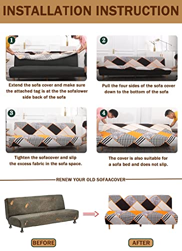 MATERIALE -- i copridivani sono realizzati in tessuto resistente e morbido ad alta elasticità, 92% fibra di poliestere + 8% spandex. Traspirante, non pilling, liscia e senza rughe, lavabile in lavatrice per una facile manutenzione. Nota: questo copridivano è adatto solo per il divano letto senza braccioli, controlla lo stile del tuo divano letto e leggi attentamente la nostra guida alle taglie.