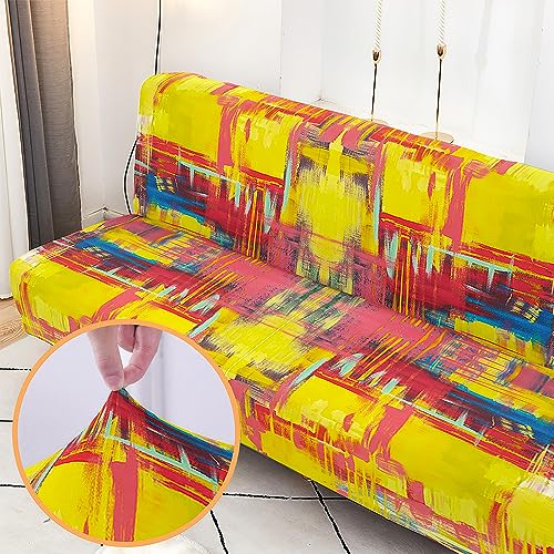Surwin Copridivano Senza Braccioli 2-3 Posti Elasticizzato, Antimacchia Fodera per Divano Letto Antiscivolo Pieghevole Clic Clac Copri Divano -Pittura ad Olio 3D (retrò Giallo,160-190cm)
