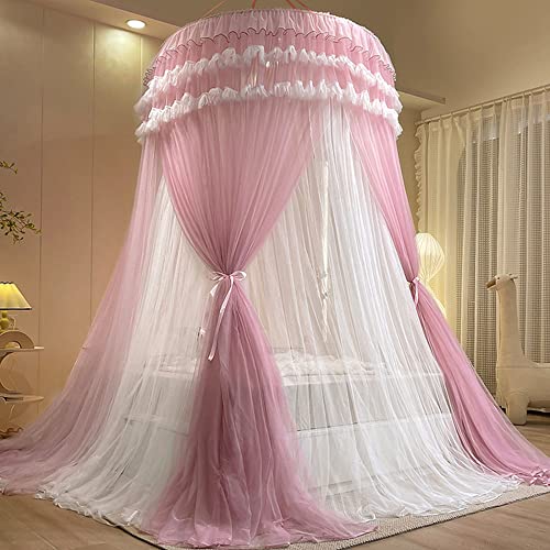 Surwin Cupola Zanzariera, Baldacchino per Letto Matrimoniale/Singolo/Bambini/Adulto Rotonda Baldacchino Protezione dalle Zanzare per Campeggio Lettura Camera da Letto (rosa Rosa)