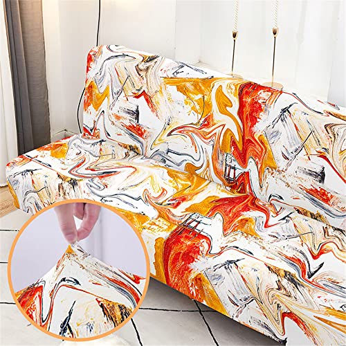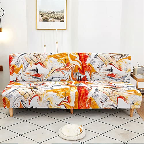 Surwin Graffiti Copridivano Senza Braccioli 2/3 Posti Elasticizzato, Antimacchia Fodera per Divano Letto Antiscivolo Pieghevole Clic Clac Rimovibile Copri Divano (Arancia Graffiti,S: 120-150cm)