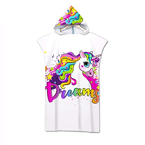 Surwin Poncho con Cappuccio Asciugamano, Cambiarsi Poncho con Cappuccio Unisex Microfibra Sport Per Cambiarsi In Palestra Piscina Spiaggia Mare Running Bike (Unicorno 4,70*110cm)
