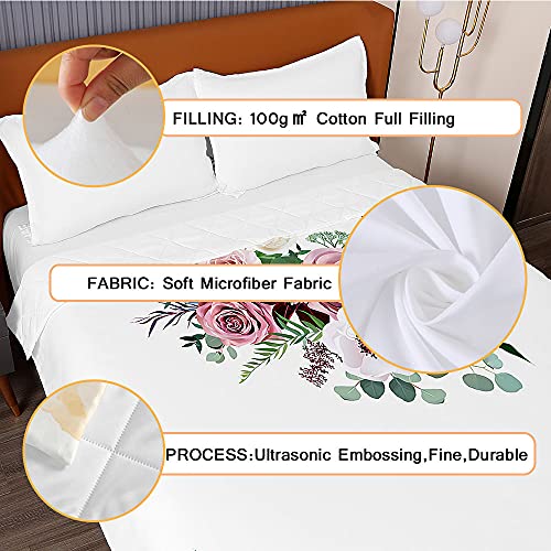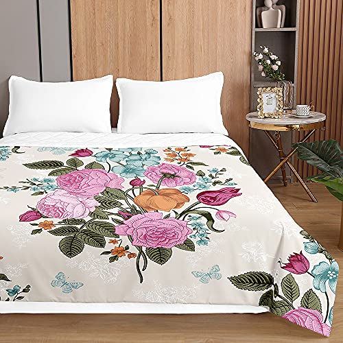 Surwin Trapuntino Copriletto Matrimoniale Trapuntato Estivo Singolo Stampa Scandinava di Fiori di Rosa 3D Trapuntino in Microfibra Leggero Morbido per Camera da Letto (Vintage Floreale,230x280cm)