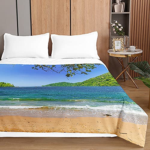 Surwin Trapuntino Copriletto Trapuntato Primaverile Estivo,Trapuntino in Morbida Microfibra con Modello di Onda del Mare 3D Leggero Coperta Letto Singolo/Matrimoniale (Isola Verde,200x230cm)