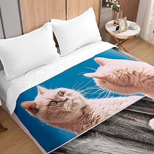 Surwin Trapuntino Copriletto Trapuntato Primaverile Estivo, Stile Moderno, Trapuntino in Morbida Microfibra Stampa Gatto 3D Leggero Coperta Letto Singolo Matrimoniale (Gatto Specchio,130x150cm)