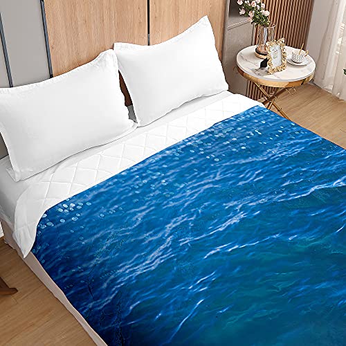 Surwin Trapuntino Copriletto Trapuntato Primaverile Estivo,Stile Moderno,Trapuntino in Morbida Microfibra con Stampa Superficie Mare 3D Leggero Coperta Letto Singolo Matrimoniale (Blu E,230x260cm)