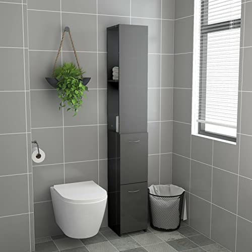 Susany Armadio da Bagno, Armadio a Colonna da Bagno, Modern Tower Mobile Bagno, Mobile Alto Colonna Bagno Grigio Lucido 25x25x170 cm in Truciolato