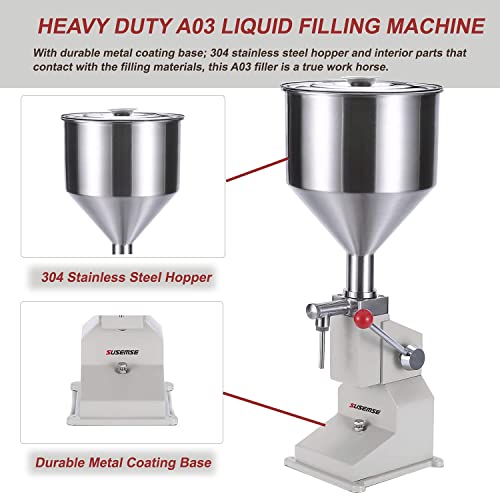 SUSEMSE Riempitrice Liquid 5-50ml, Macchina di riempimento liquido A03, manuale macchina di riempimento bottiglia per acqua crema miele paste