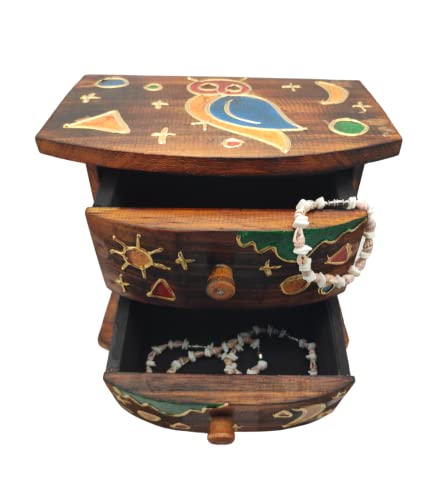 SusggO Gufo Fortunato Organizzatore da Tavolo Legno 2 cassetti da posizionare sulla scrivania. Scatola per Gioielli Scatola per Il Cucito Organizer da scrivania Decorazione per la casa Fatta a Mano