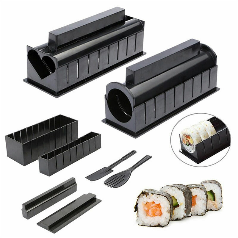 Peso: 700 g Realizzato in materiale PP sano. Rimovibile, facile da usare e da pulire. Sushi, incredibile cucina giapponese, pensata per i principianti, pronta a stimolare le tue papille gustative. Questo kit ti permette di soddisfare la tua voglia di sushi, permettendoti allo stesso tempo di provare nuove tecniche culinarie di preparazione in cucina. Tutti gli strumenti di cui hai bisogno per preparare facilmente il tuo sushi giapponese a casa! Il kit include 5 stampi, che ti permettono di realizzare facilmente 5 diverse forme di sushi: 1. sushi triangolare (Forma: 193 * 35 * 14mm, sushi: 25 * 20 * 11mm) 2. Sushi a forma di cuore (Forma: 200 * 74 * 62mm, sushi: 55 * 30 * 18mm) 3. Sushi rotondo classico (Forma: 200 * 72 * 60mm, sushi realizzato: 55 * 20mm) 4. Sushi quadrato grande (Dimensioni forma: 200* 35*41mm, sushi realizzato: 55*20*32mm) 5. piccolo sushi quadrato (Forma: 193*35*41mm, sushi realizzato: 25*20*32mm)