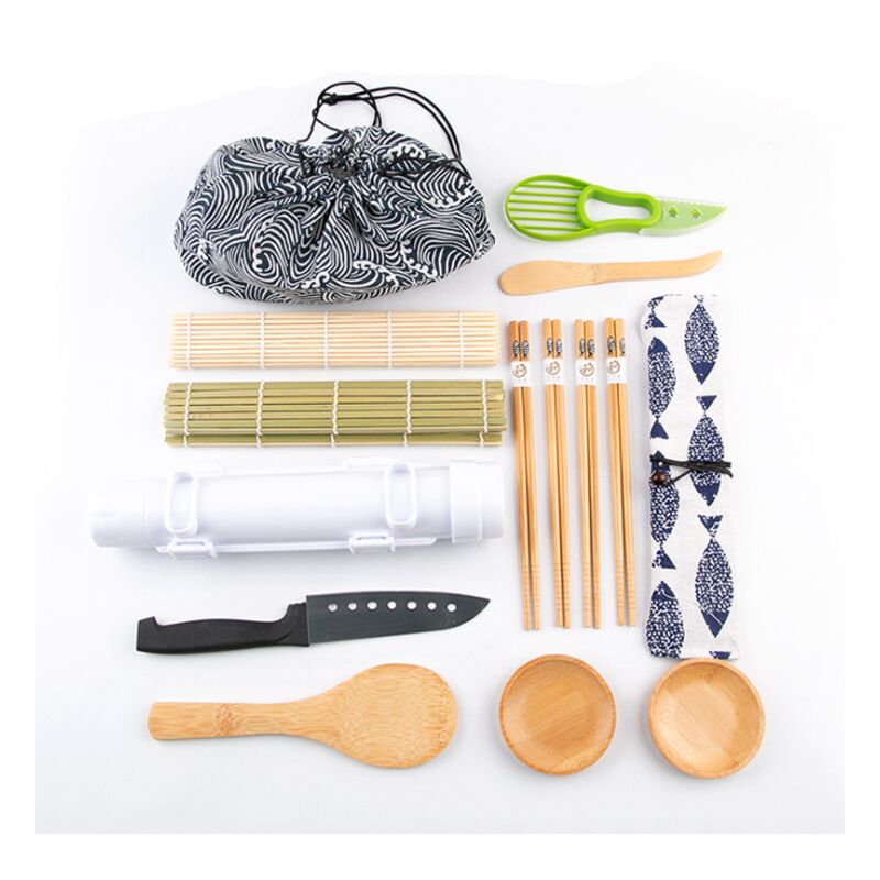 Numerosi stampi per sushi: dotati di un tapis roulant sushi, 1 spread di riso, 1 fetta di riso, 2 piastre suscettibili e 4 paia di bacchette e 1 sacchetto di stoccaggio per sushi Materiali di produzione Biological Sushi: la nostra produzione di sushi La macchina è composta da bambù naturale al 100%, che è un materiale ecologico e biodegradabile, che non ha alcun effetto dannoso sulla tua salute facile da pulire: è più facile da pulire se si copre il tappetino di Bambù Sushi di Un involucro di plastica prima di diffondere alghe e riso sushi. Lavati le mani dopo l'uso e asciugarli attentamente prima di memorizzarli. sushi per principianti: Il kit Sushi è perfetto per principianti o fan dei rulli di sushi. Può fare sushi a casa e offrirti deliziose cene di sushi fatte in casa in un modo tradizionale, che ammerà i tuoi ospiti. Regali da cucina: regali unici e pratici per i fan di sushi giapponesi. Questo set di cuisine sushi è un regalo ideale per tutte le occasioni come Natale