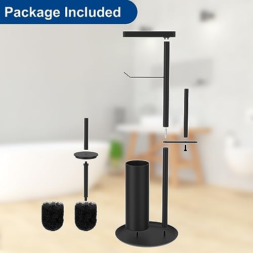 Susswiff Piantana Portarotolo e Scopino - Porta Carta Igienica Nero con Scaffale per Salviettine Umidificate, Acciaio Inox Portarotolo Carta Igienica con Spazzolino WC, Porta Scopino WC, in Piedi