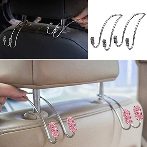 Suszian Ganci per Sedile Posteriore per Auto, 2 Pezzi Ganci per seggiolino Auto Bling Ganci per poggiatesta per Sedile Posteriore Universale per Auto Strass Appendini per Auto Organizzatori
