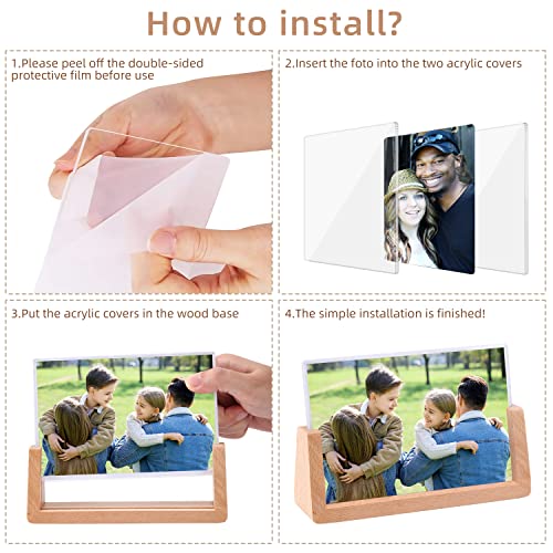 Facile da usare ❀❀❀è sufficiente inserire la foto nei due vetri e posizionarli nella base di legno (Non dimenticate di togliere gli adesivi sui pannelli acrilici). Il design indipendente e la base stabile consentono di posizionarlo ovunque, su un tavolo da scrittura, uno scaffale, ecc