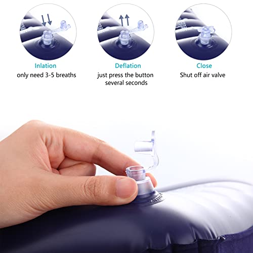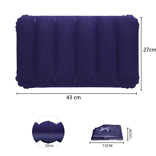 SUTAFOR Cuscino Gonfiabile per Campeggio, Spiaggia e Escursioni Compatto e Ultraleggero Cuscino da Viaggio in Velluto Morbido, Blu 43x27 cm