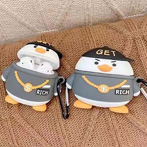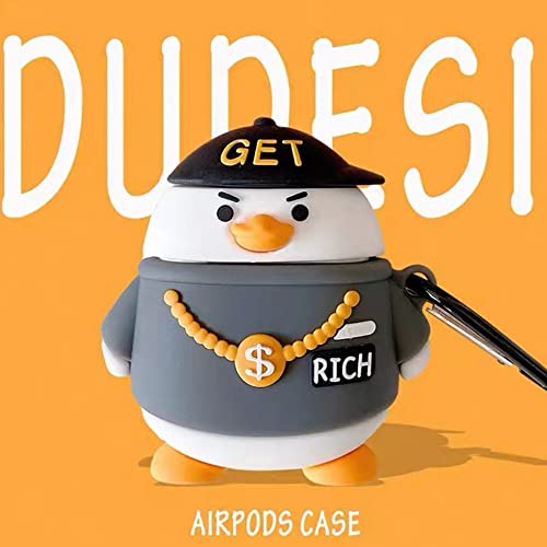 Suwegx Custodia protettiva per Airpods di seconda generazione, creativa bella 3D Hip-hop Duck in silicone con portachiavi, custodia antiurto per Airpod